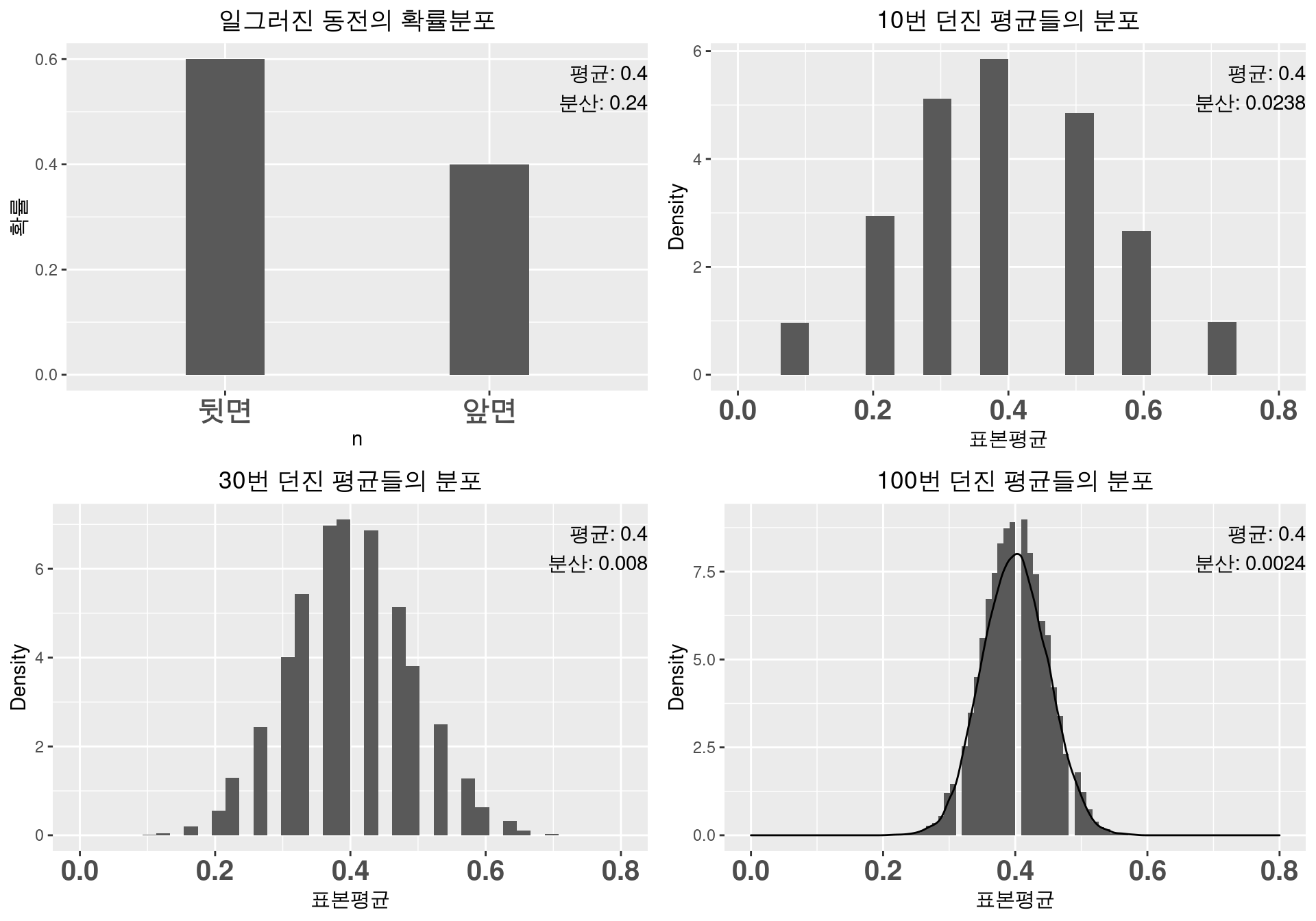 중심극한정리: 모양이 일그러진 동전 / 주사위 던지기